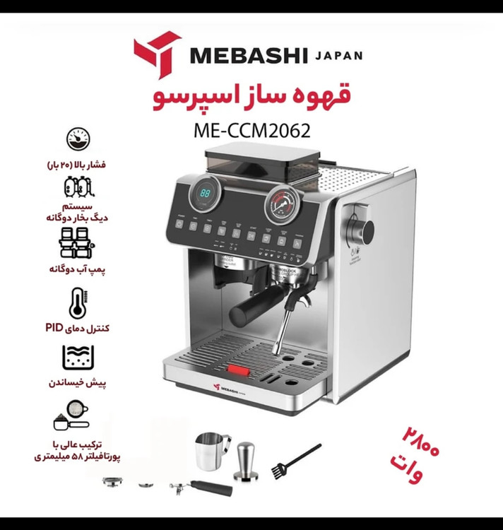 اسپرسوساز مباشی مدل ME-CCM 2062 دارای توان مصرفی 2800 وات و فشار بخار 20 بار بوده که موجب میشود با کیفیتترین نوشیدنیها را در کوتاهترین زمان سرو کنید.