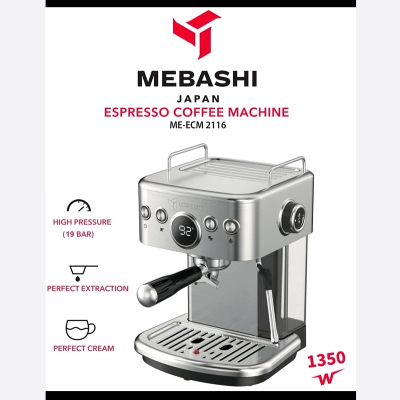 اسپرسوساز مباشی مدل ME-ECM 2116 ساخت کشور : چین تحت لیسانس ژاپن سایز پرتافیلتر : 51 جنس بدنه : استیل ضد زنگ فشار بخار : 19 بار توان موتور : 1350 وات ظرفیت مخزن : 1.5 لیتر سستم کاپوچینوساز : دارد نشانگر سطح آب : دارد قابلیت تولید کف شیر : دارد نازل بخار : دارد تمپر و پیمانه قهوه : دارد سینی چکه گیر : دارد گرم کن فنجان : دارد سستم خاموشی خودکار : دارد وزن : 5 کیلوگرم ابعاد: 20×45×35 سانتی متر نوشیدنی های قابل تهیه : اسپرسو،کاپوچینو،لاته،کافه ماکیاتو،آب جوش،شیر گرم،موکا و …